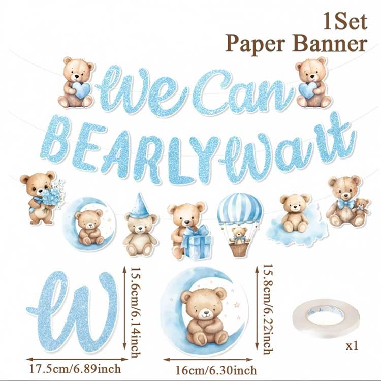 Bursdagsbanner: 1 banner/sett, med 2-3 hengende tau for oppheng av dekorasjon; trykket med "Happy Birthday" eller "Velkommen". Tekst med babytema