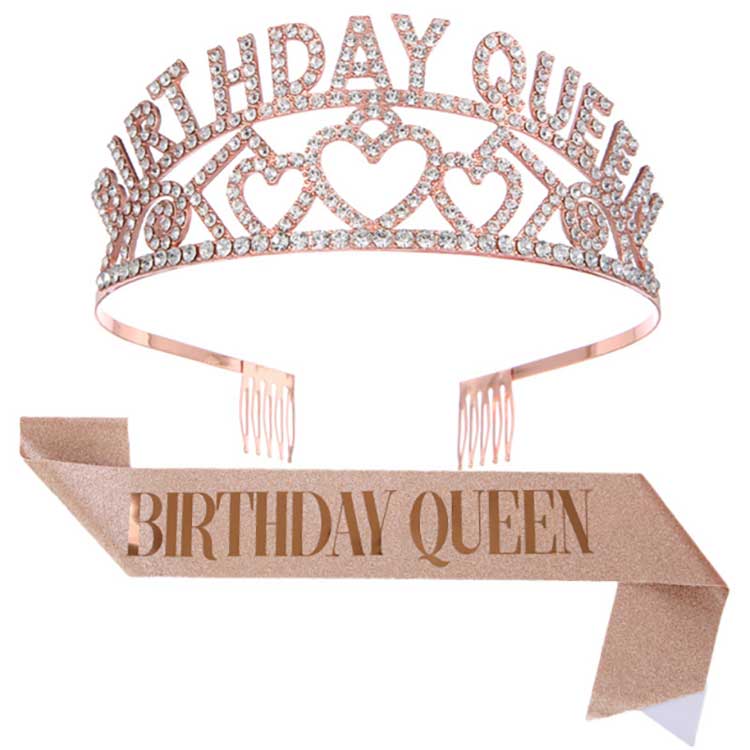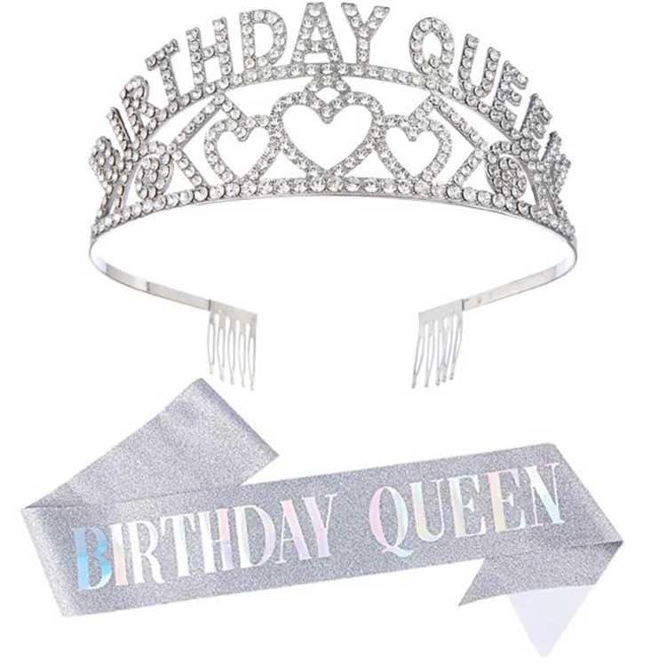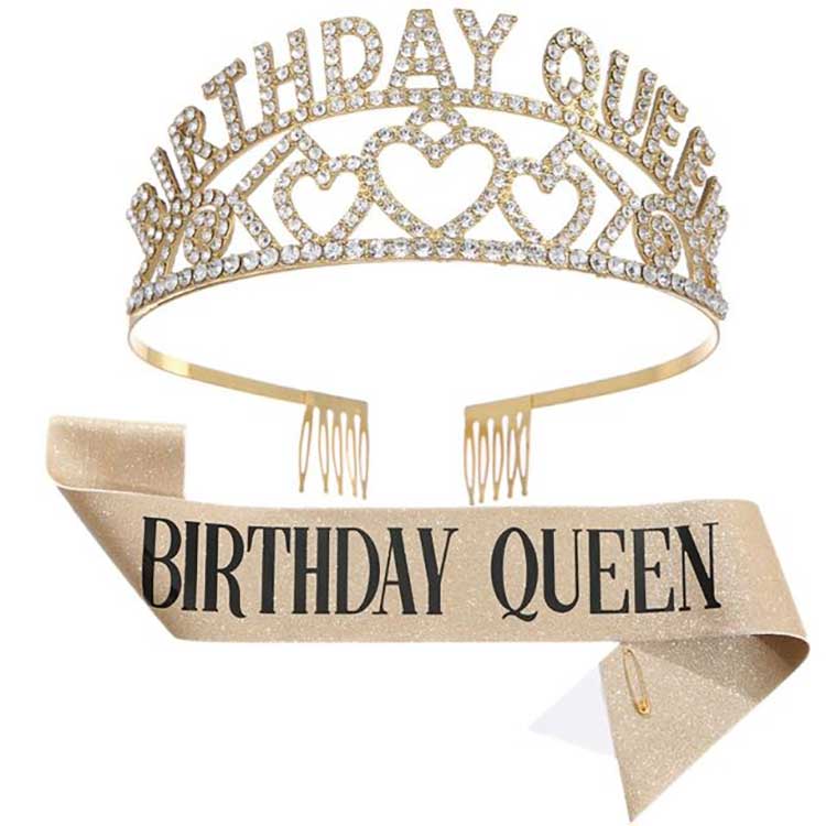 Birthday Queen Crown er et hodeplagg som kommer som et sett med skulderremmen. Kronens hoveddel er laget av legering, noe som sikrer at den ikke falmer eller skades. Vi har brukt en innleggsteknikk for å feste diamantene til legeringsrammen, slik at de ikke lett faller av. Denne perfekte produktkvaliteten garanterer at du kan fortsette å bruke den ved fremtidige bursdagsbegivenheter.