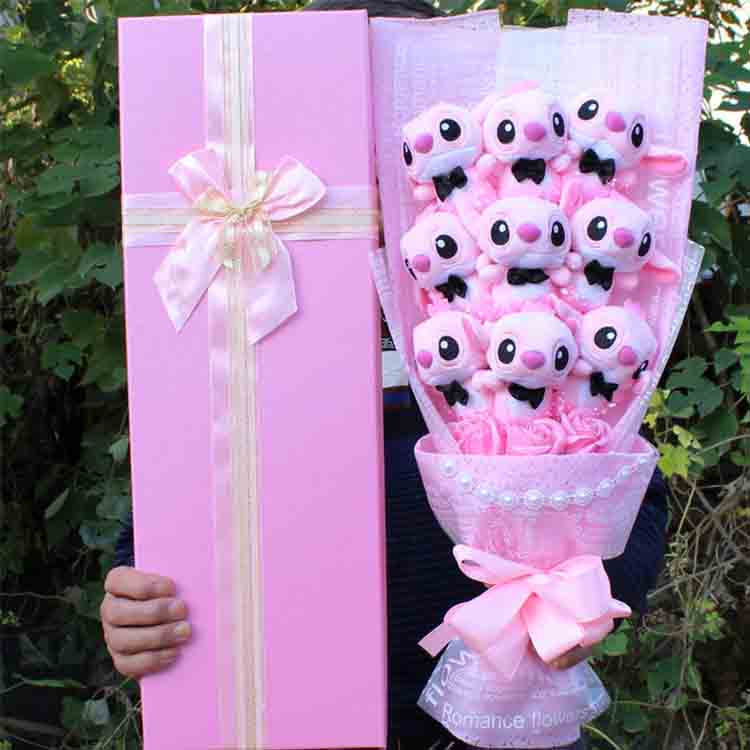 Vi har utsøkt håndlaget kunstnerskap for søt sting tegneseriebukett. Dette er langt mer enn bare plysjleker i en boks. Hvert eneste element er omhyggelig plassert:
