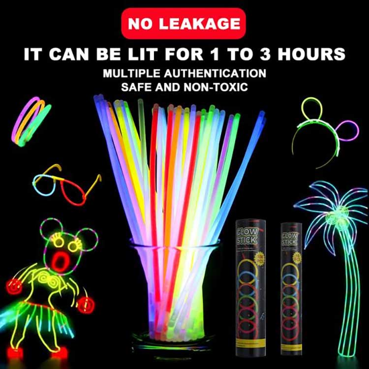 Glow stickt har blitt oppgradert til en lysere og mer iøynefallende farge. Den kan forbli opplyst i 1 til 3 timer. Det fluorescerende materialet som brukes i de fluorescerende stavene har en høy konsentrasjon, noe som resulterer i en langvarig og høy intensitet glød.