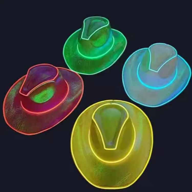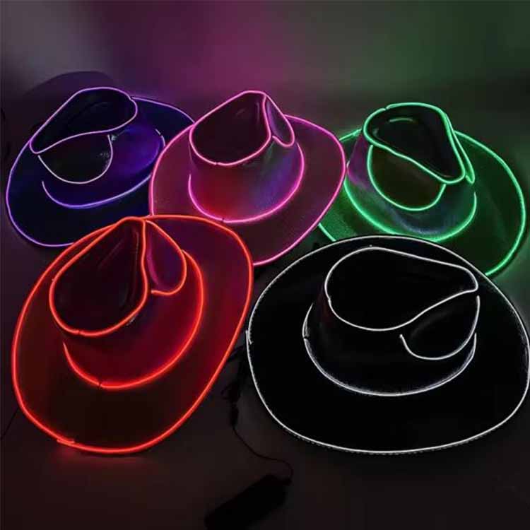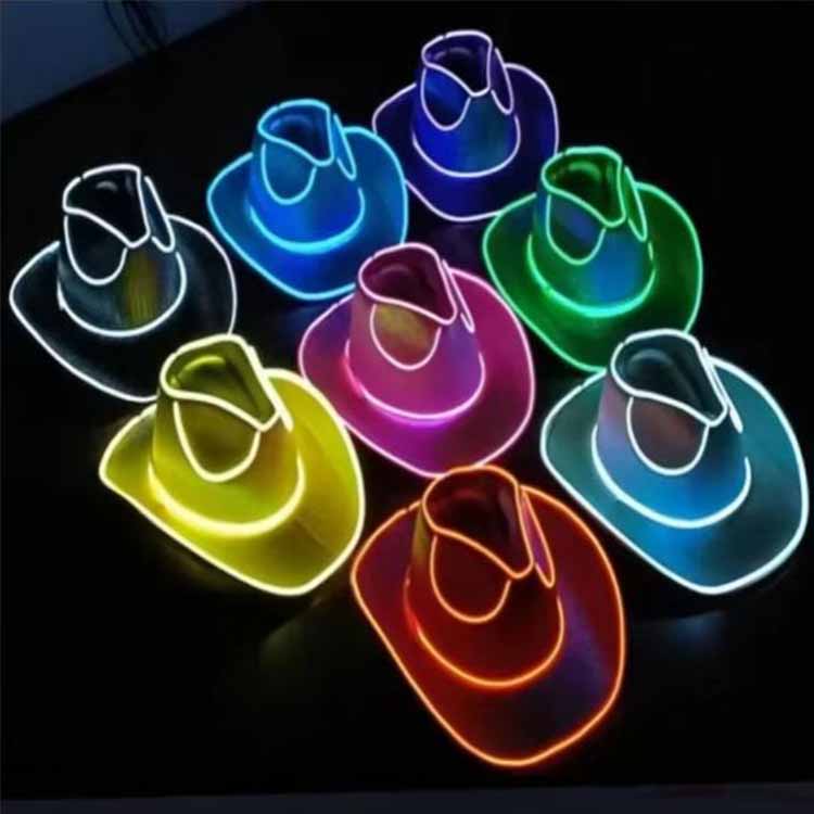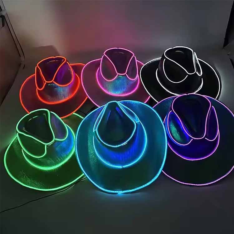 Denne LED-fluorescerende fargerike hatten er enkel å bruke og kan enkelt installeres på bare 5 minutter. Bare sett inn to AA-batterier, slå på bryteren og nyt moroa med den lysende cowboyhatten.