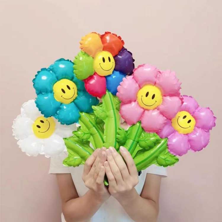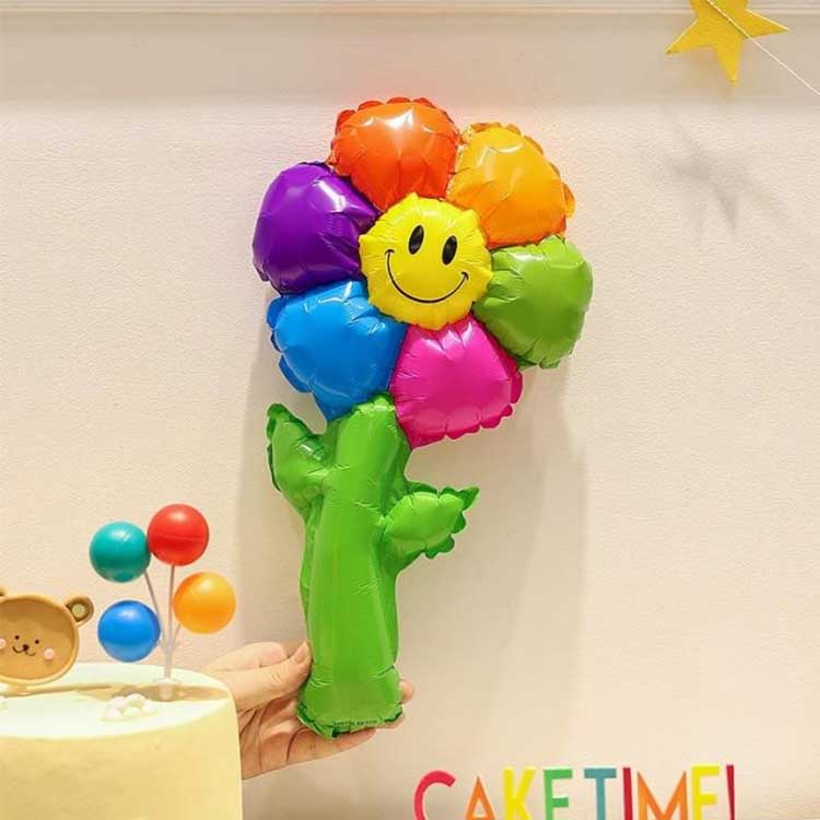 2. Utmerket tekstur: Overflaten på folieballongene har en metallisk glans, og de trykte mønstrene (som solsikkeskiven og kronbladene) er levende, detaljerte og holdbare, falming og ripebestandige, noe som gjør dem visuelt mer tiltalende.