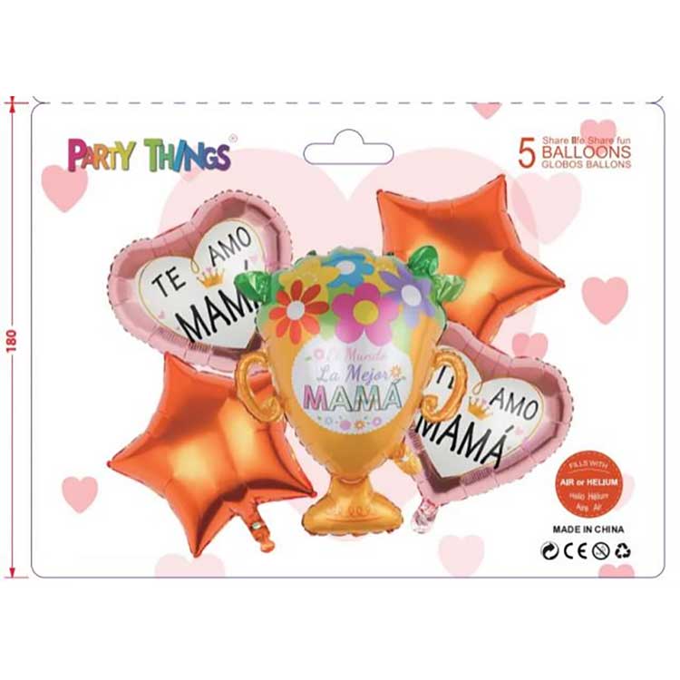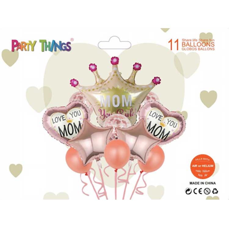 NewShine Happy Mother's Day ballongsett kommer i ulike design, inkludert lateksballonger og trykte tegneseriefolieballonger. Du kan mikse og matche dem for å lage ditt eget unike ballongsett.