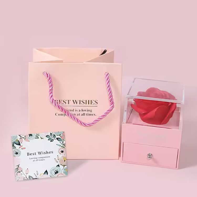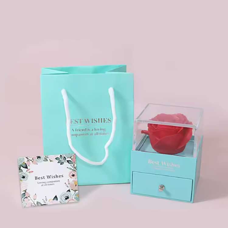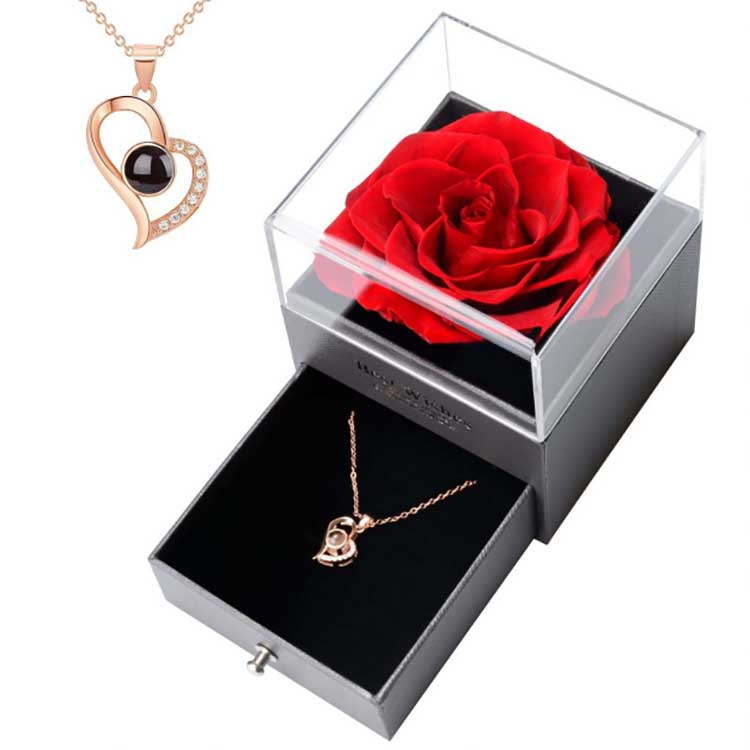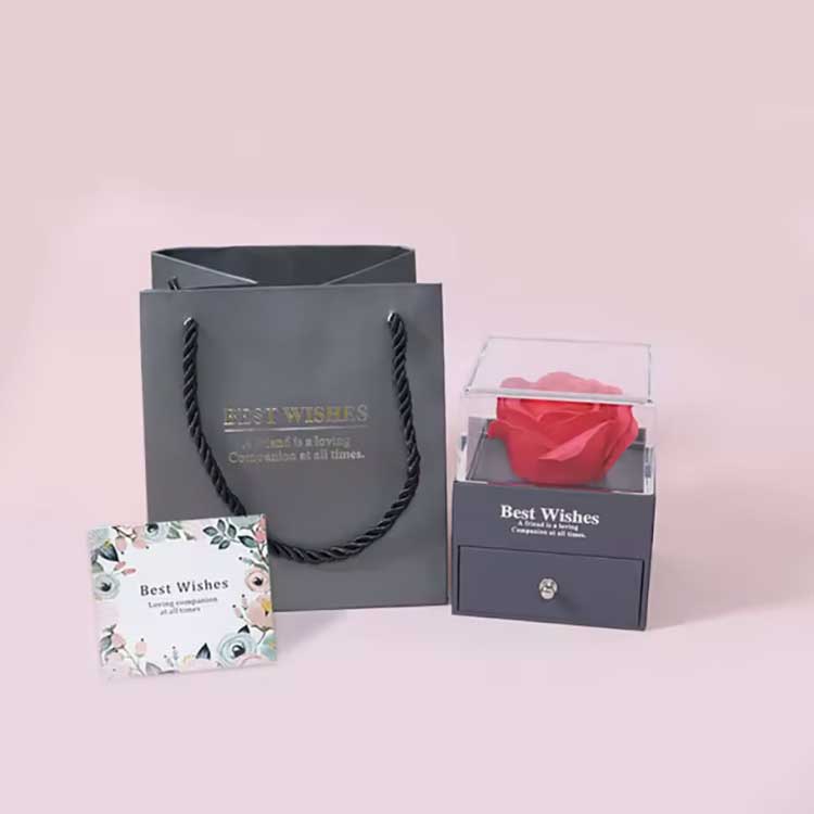The Immortal Flower Gift Box er et populært produkt. Tilbehøret er laget av materialer av høy kvalitet. Hvert sett med gaveeske inneholder en lys rose og utsøkte smykker. Når du mottar dem, kan du bruke dem direkte uten å måtte installere dem selv. De kan fullt ut uttrykke følelsene dine til venner eller slektninger, noe som gjør seremonien full av romantikk og overraskelse.