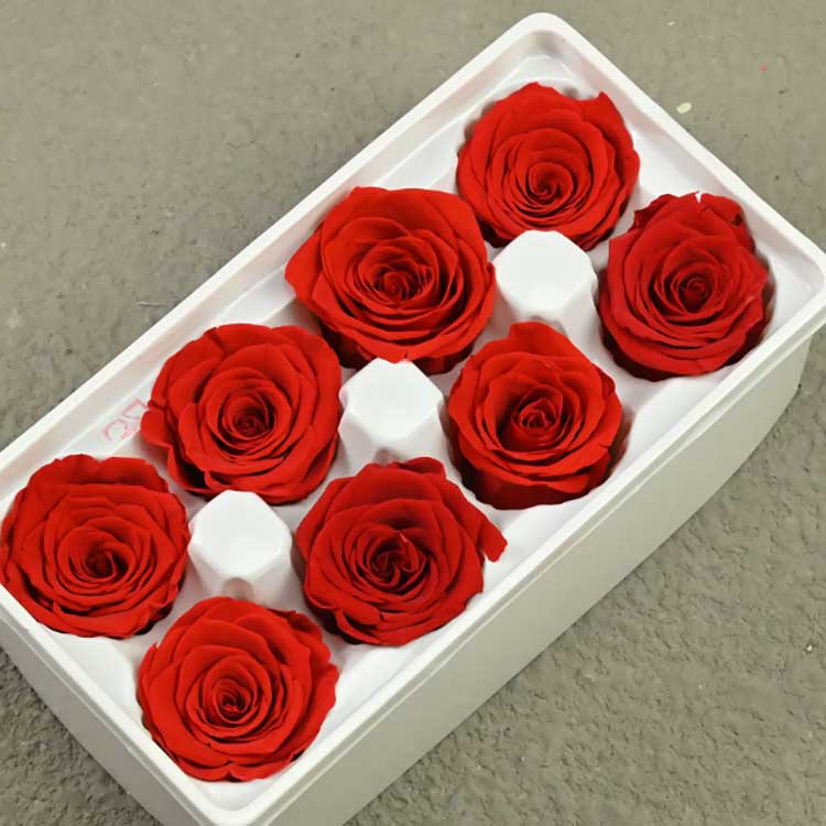 Konserverte roser, også kjent som blomster som aldri falmer, er laget av friske roser av klasse A, som gjennomgår over ti komplekse prosesstrinn, inkludert dehydrering, bleking, nyfarging og tørking. Disse produktene bevarer den myke teksturen og naturlige formen til friske blomster samtidig som de forlenger blomstringsperioden. Med riktig oppbevaring kan de vare i 3-5 år.