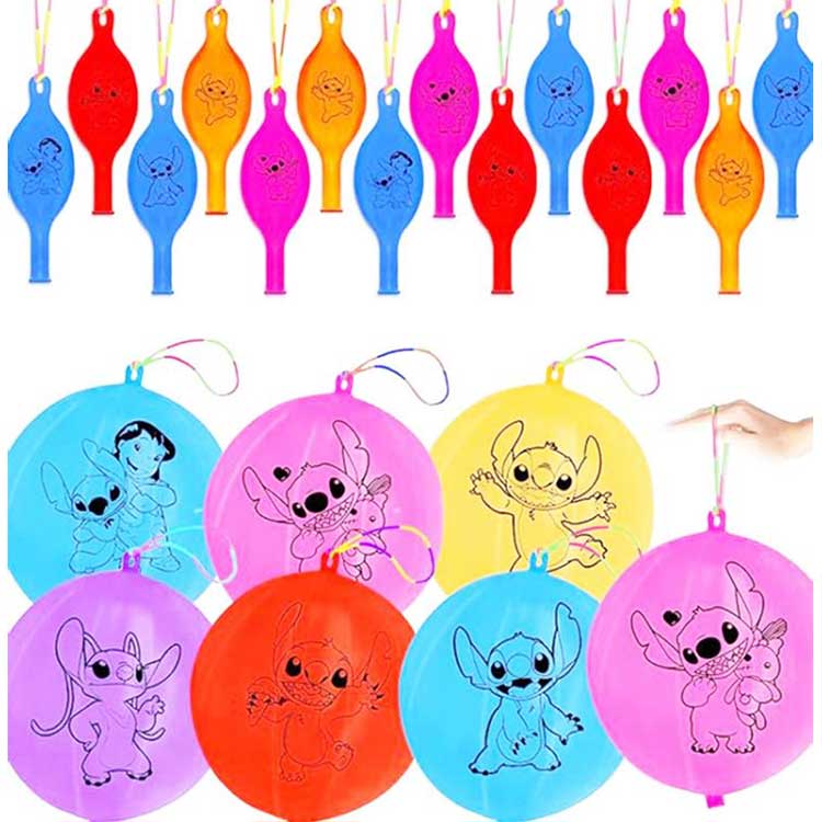 Det er enkelt å bruke disse stanseballongene med gummibånd. Fordi ballongene er relativt store, anbefaler vi å bruke en elektrisk luftpumpe for å blåse dem opp – å blåse med munnen krever betydelig innsats på grunn av den tykke lateksen. Blås opp til de føles faste, men litt fjærende; overinflasjon kan føre til at de lett sprekker ved støt. Knyt deretter en knute for å sikre ballongen, og sørg for at gummibåndhåndtaket er rett over knuten for balansert svinging. Fest gummibåndet på fingeren og bank forsiktig på ballongen, og bank deretter på dem som du vil. Hold i tillegg ballongene unna skarpe gjenstander, grove overflater og åpen ild.