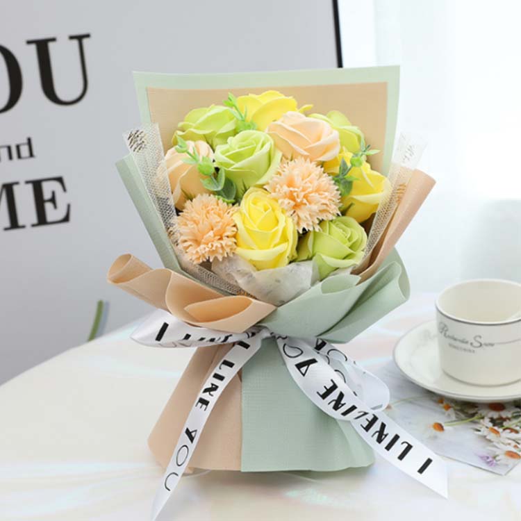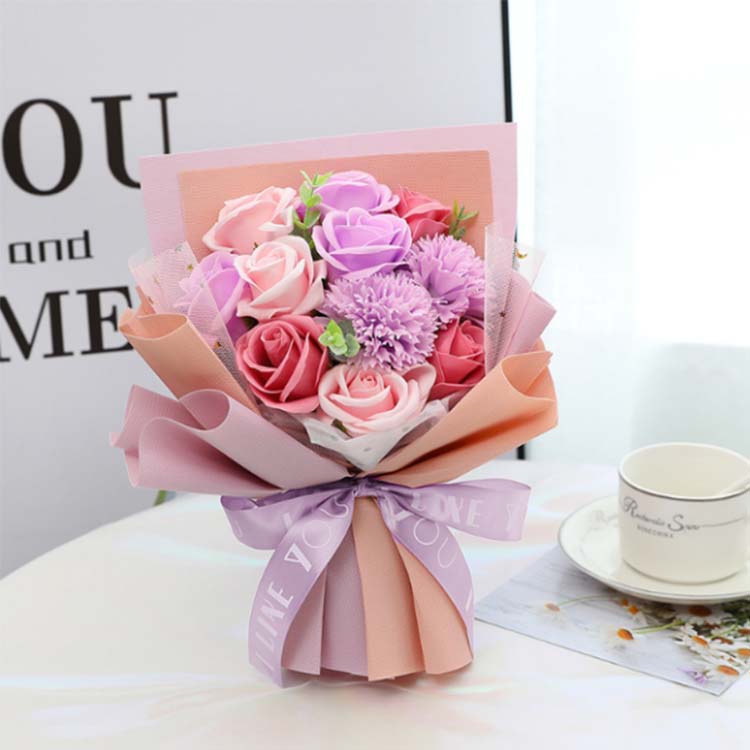Såpeblomstbukett er et syntetisk blomsterkunstverk laget av naturlig såpebase gjennom manuell forming.