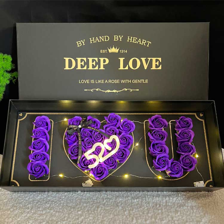 Soap Rose Heads blomsterkasse måler 61cm*26cm*10cm. Denne størrelsen kan fullt ut romme et tilstrekkelig antall såpeblomster, og skaper en utsøkt visuell effekt, samtidig som den letter etterfølgende lagring og transport. Enten for personlig kjøp som en gave eller for bedriftens massekjøp som en gave, kan den enkelt møte behovene til både personlig og bedriftsbruk.